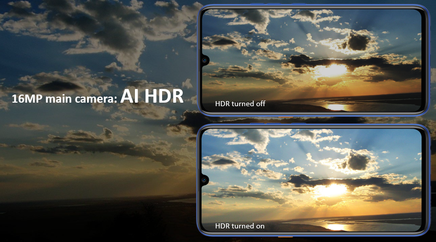 Tout d'abord, la principale lentille de 16MP avec un diaphragme d’ouverture f2.0 se concentre sur la détection de scènes par intelligence artificielle (IA) et par intelligence artificielle des images à grande gamme dynamique (AI HDR). Développé par des algorithmes usuels, couvrant divers scénarios de prise de vue courants et offrant une optimisation correspondante de l'IA, l’utilisateur peut ainsi prendre des photos plus belles et naturelles. Avec l’AI HDR activé, la photo sera 21,4% plus claire que si ce mode est désactivé. L'effet Bokeh remarquable met en valeur le portrait principal et floute l'arrière-plan, faisant du portrait le meilleur sens visuel.