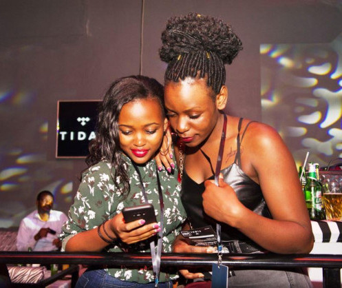 • (Left) Val Okecho (Manager - Corporate Communications at MTN Uganda) shows guests features of the TIDAL App during the launch of the partnership