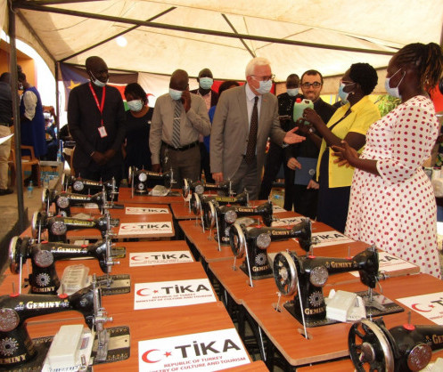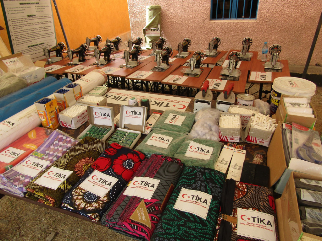 A project aiming to train 100 women and help them enter a profession was implemented in cooperation with Women for Change (WfC). For the tailoring training offered as part of the project, TİKA provided 15 sewing machines, 15 tailoring tables, 5 rolls of African Kitenge fabrics in different colors, 10 rolls of extra-large adhesive paper, 15 rolls of Manila papers, 5 rolls of khaki fabric, 5 rolls of Tetoron fabric, cutting tables, irons, needles, threads, rulers, tape measures, pencils, erasers, exercise books, buttons, scissors, and many other materials.