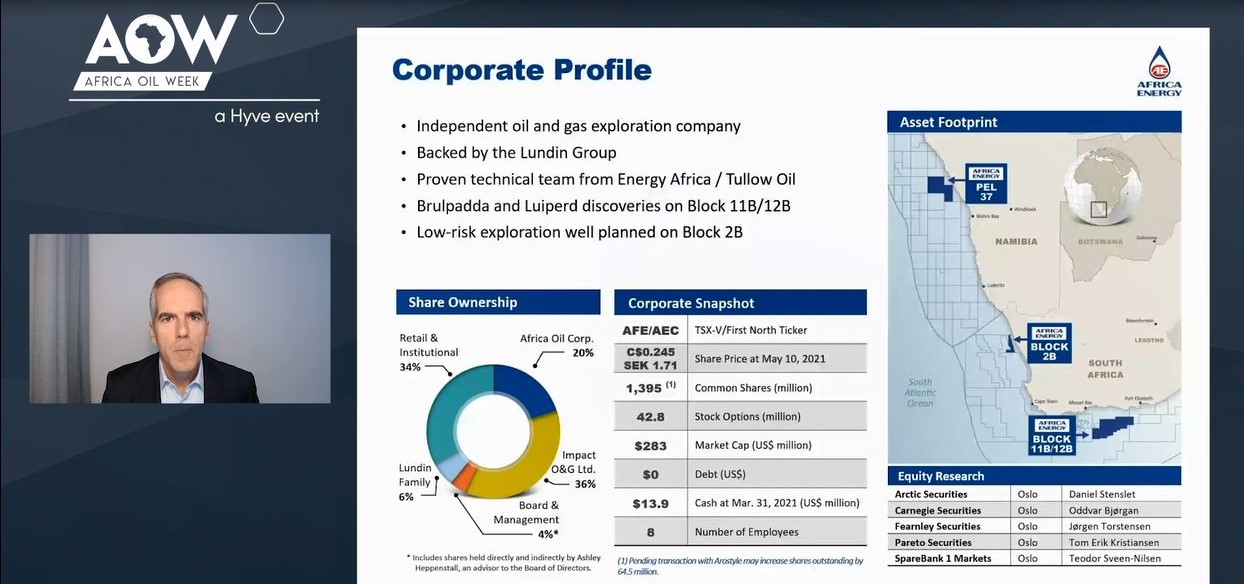 • Garrett Soden, President, CEO & Director of Africa Energy Corp presents their portfolio of world-class assets offshore Southern Africa