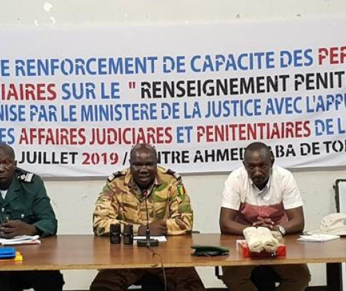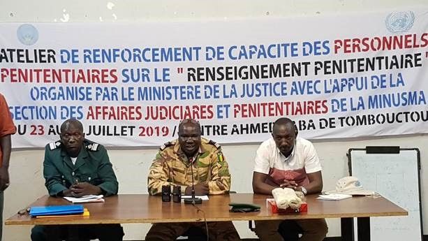 Le Ministère de la Justice, en collaboration avec la Section des Affaires judiciaires et pénitentiaires de la MINUSMA (SAJP) à Tombouctou, a organisé du 23 au 25 juillet, un atelier de renforcement de capacités au profit de 20 Agents de l’Administration pénitentiaire de la région. La rencontre s’est déroulée au Centre Ahmed Baba, sous le thème : « Contribution du Renseignement pénitentiaire dans la prévention et la lutte contre le terrorisme dans la Région de Tombouctou ». Le Directeur régional de l’Administration pénitentiaire et de l’Education surveillée (DRAPES) ainsi que des représentants de la SAJP de la MINUSMA à Tombouctou étaient également présents.