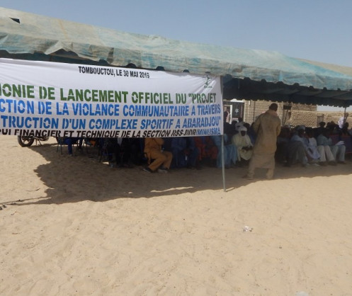 Le 30 Mai dernier, le bureau régional de la MINUSMA à Tombouctou à travers la Section de la Réforme du Secteur Sécurité, du Désarmement de la Démobilisation et de la Réinsertion (RSS-DDR), a procédé au lancement officiel d’un complexe sportif, situé au quartier d’Abaradjou. Ce projet de Réduction de la violence Communautaire (RVC) financé par la MINUSMA pour plus de 50 millions de FCFA (53. 144. 44 de FCFA) va contribuer à la consolidation de la paix, la cohésion sociale et le vivre ensemble entre les différentes communautés.