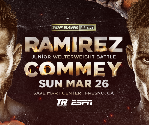 Top Rank Boxing is boxing’s leading promotion company that has shaped, developed and promoted the careers of top international pay-per-view superstars, including Muhammad Ali, Marvin Hagler, Tommy Hearns, George Foreman, Sugar Ray Leonard, Aaron Pryor, Alexis Arguello, Oscar De La Hoya, Manny Pacquiao, Floyd Mayweather Jr., Miguel Cotto, Erik Morales, Terence Crawford, Vasiliy Lomachenko, and others. Top Rank has been an architect of boxing’s global growth by staging high-profile events in landmark settings around the world and the upcoming fights promise to continue to build this legacy.