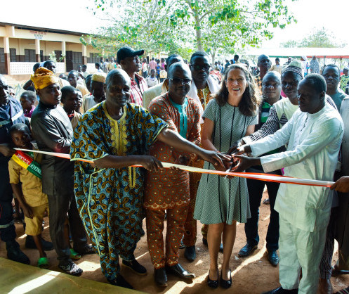 L’Ambassadeur des Etats-Unis près le Bénin, Patricia Mahoney, a effectué une tournée dans le nord du Bénin du 5 au 7 Février 2020 pour constater l’évolution des projets financés par le gouvernement américain dans la région.  Cette tournée a débuté par Djougou où l’Ambassadeur a inauguré un bâtiment de salles de classe au CEG Sérou.  Ces salles de classe ont été construites sur financement du Département de la Défense des Etats-Unis, à la demande de l'Association des Parents d’Elèves du CEG qui ont exprimé le besoin de salles de classes supplémentaires pour leurs enfants.