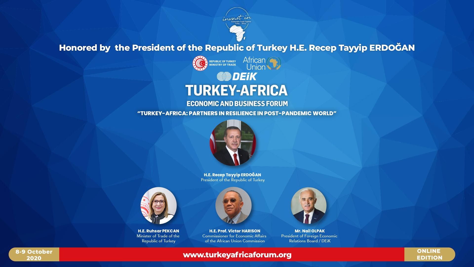 Partant du principe que le commerce, l'investissement et la relance sont nécessaires pour amortir l'impact économique de la crise actuelle et accroître la résilience des économies, nous sommes fiers de vous annoncer que le Forum Économique et Commercial Turquie-Afrique (TABEF) se tiendra en ligne pour la première fois, le 8 et 9 octobre 2020, afin de fournir un espace ouvert aux représentants éminents des acteurs des secteurs public et privé, à la fois de la Turquie et d'Afrique, pour discuter et identifier conjointement des étapes enfin d'intensifier l'engagement du secteur privé et catalyser innovation dans les partenariats public-privé pour une croissance et un développement à grande échelle, durables et inclusifs tout en tirant parti de leurs expériences respectives.