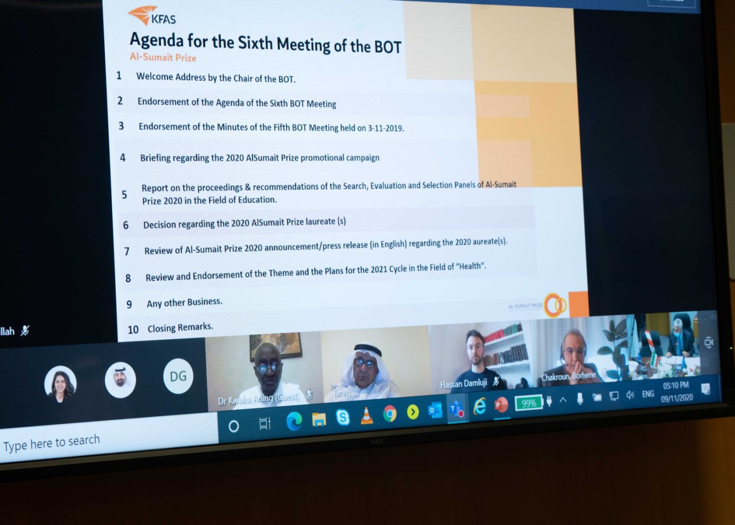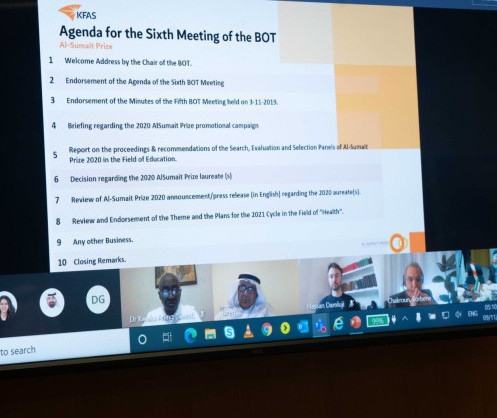 Les lauréats du cycle 2020 du prix Al-Sumait pour le développement africain dans le domaine de l’éducation ont été approuvés par le Conseil d’administration du Prix, suite à leur excellent travail dans le développement de l’éducation en Afrique. Le prestigieux prix Al-Sumait 2020 a été attribué à Ubongo Learning et au Molteno Institute for Language and Literacy (institut Molteno des langues et de l’alphabétisation). Son Éminence, le Cheikh/Dr. Ahmad Al-Nasser Al-Mohammad Al-Sabah, ministre des Affaires Étrangères et Ministre de l’Information par intérim, a présidé la réunion du conseil d’administration.
