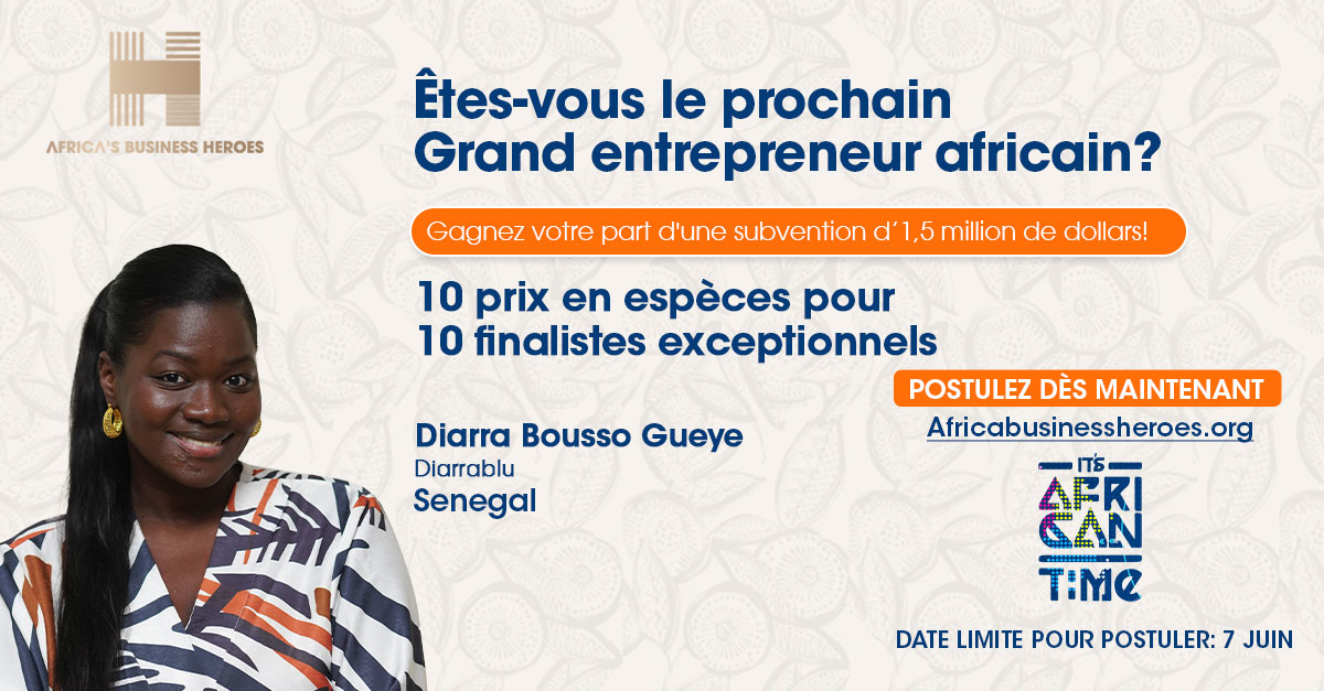 يغلق باب تقديم طلبات التسجيل في مسابقة "أبطال الأعمال في إفريقيا" (www.AfricaBusinessHeroes.org) لسنة 2021، يوم 7 يونيو القادم.  إلى حد كتابة هذه الأسطر، تقدم آلاف رواد الأعمال من جميع أنحاء القارة بطلبات تسجيل للحظو بفرصة المنافسة على لقب بطل الأعمال في أفريقيا.