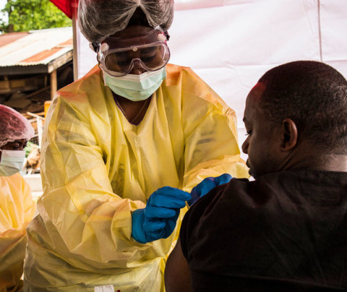 • World Bank/Vincent Tremeau | A health worker vaccinates a man against the Ebola virus in Beni, eastern Democratic Republic of the Congo. (file photo)