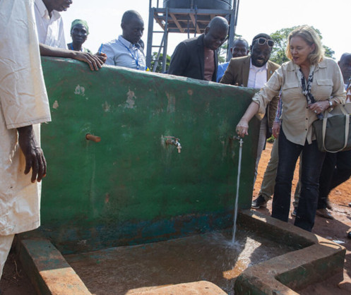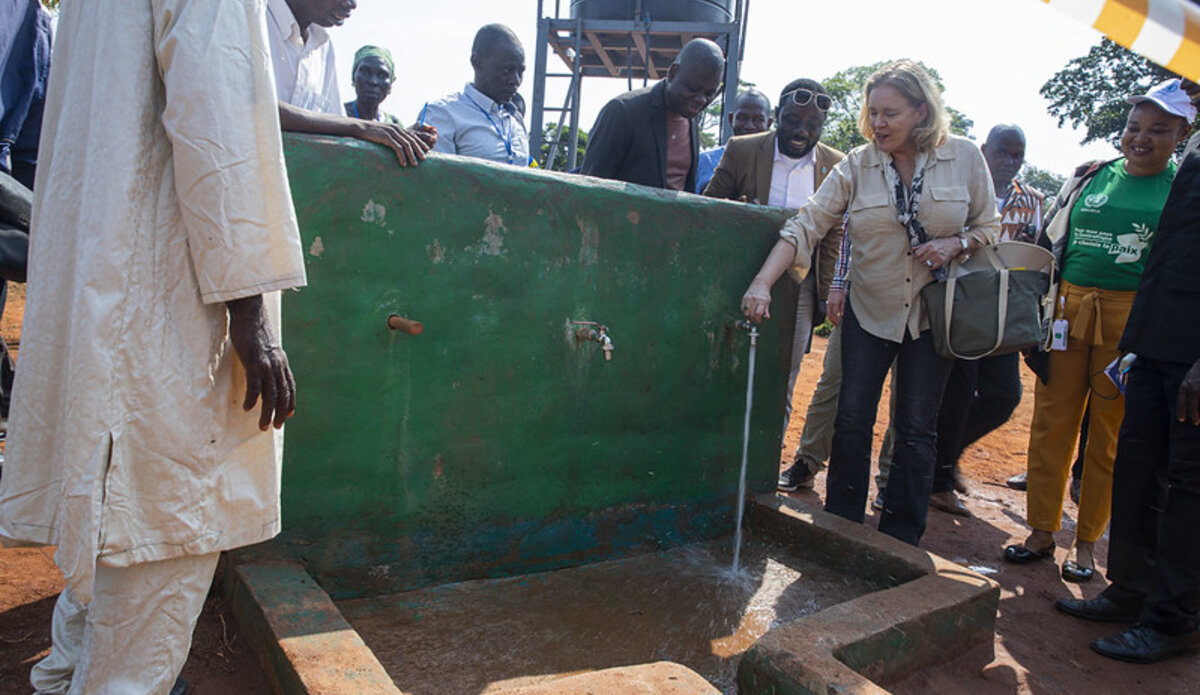 La Représentante spéciale adjointe du Secrétaire général de l’ONU, Lizbeth Cullity, a indiqué aux bénéficiaires que : « Ce forage ne servira pas uniquement de point d’accès à l’eau potable pour la population de Pk55, mais aussi, et surtout, de point de rencontres, d’échanges et de partage qui contribuent absolument à renforcer la cohésion sociale entre les différentes communautés ».