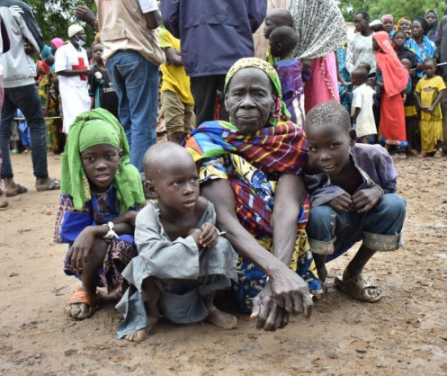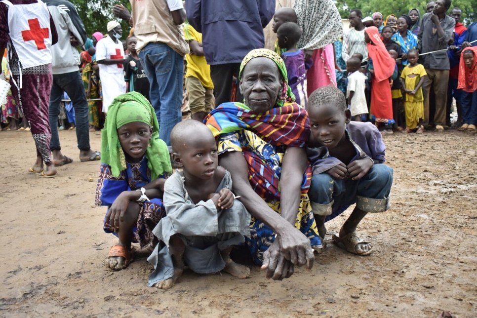 • Amina et ses trois petits-enfants sur un site d’accueil pour les réfugiés camerounais à Oundouma, au Tchad. © HCR/Aristophane Ngargoune