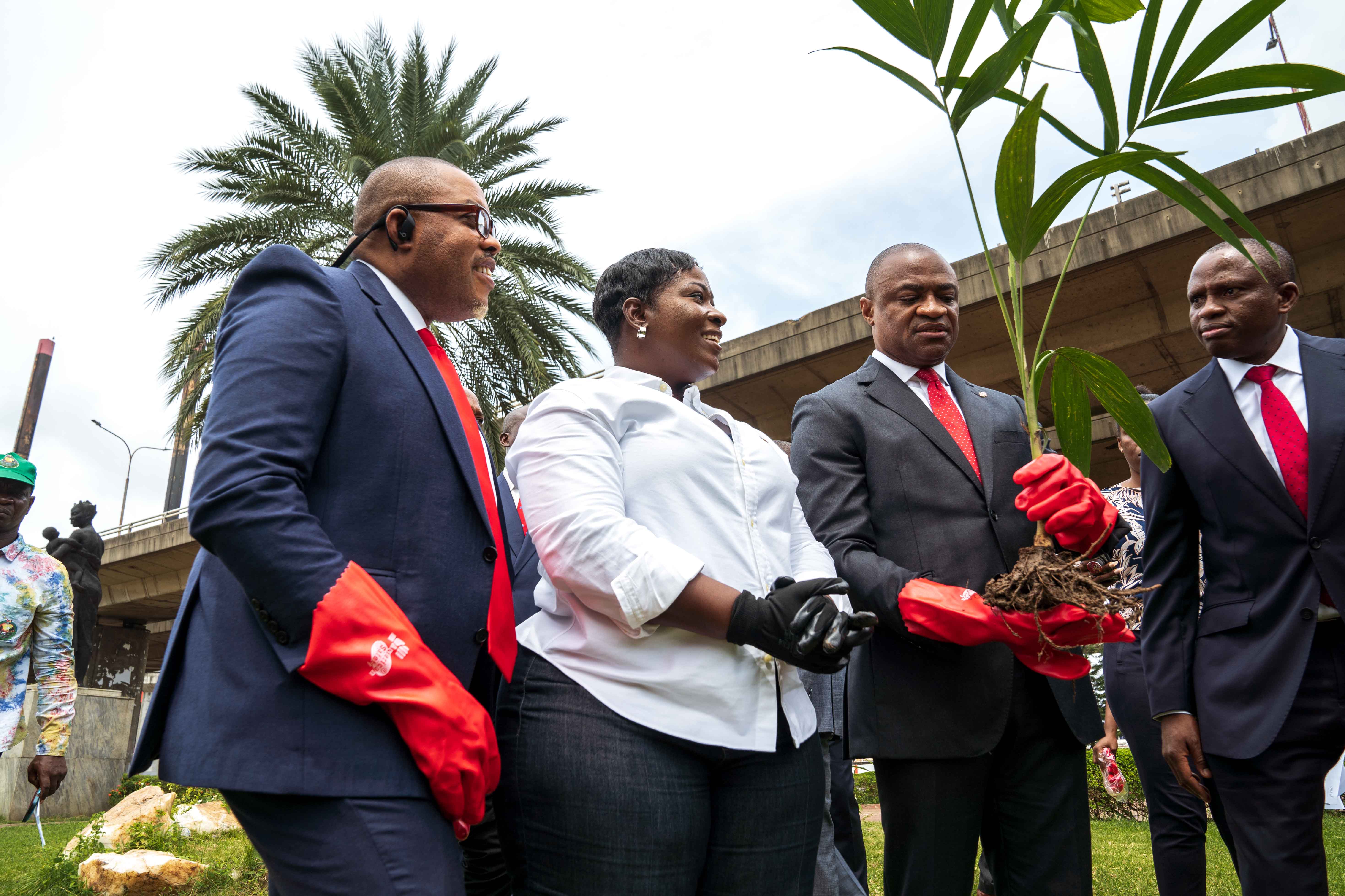• L-R: Executive Director/GCOO, United Bank for Africa (UBA), Mr. Alex Alozie; General Manager, Lagos State Parks and Gardens, Adetoun Popoola; Group Managing Director/CEO, UBA, Mr. Oliver Alawuba; Executive Director, Finance and Risk Management, Ugo Nwaghodoh; and Company Secretary, UBA, Bili Odum, at the flag-off of UBA Foundation’s Tree Planting Initiative, held at the UBA Foundation Garden in Marina, Lagos recently