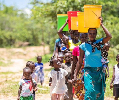 • Schermbrucke Women and children collect water from a recently rehabilitated well point in Gwembe Valley, Zambia. (file) Image source: UNICEF/Karin