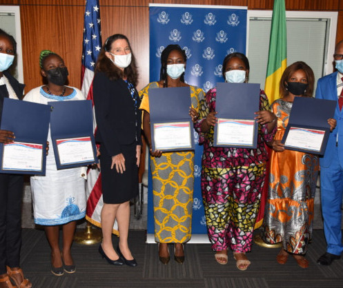 The United States, through the U.S. African Development Foundation, awarded $10,000 in seed money each to five Beninese Academy for Women Entrepreneurs (AWE) participants to grow their businesses. U.S. Ambassador to Benin Patricia Mahoney and USADF Country Representative for Benin Eric Newman presided over the award ceremony at the U.S. Embassy on December 22, 2021.
