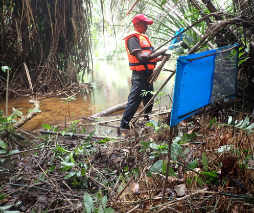 • Tiny Targets are small screens of insecticidal fabric that are placed along local riverbanks and close to water sources to successfully attract and kill the tsetse flies that transmit sleeping sickness. Photo courtesy of Sophie Dunkley (1)