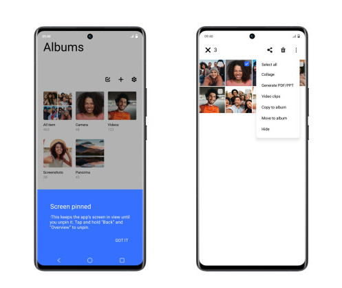 The new app pinning feature helps keep sensitive data secure, providing users greater peace of mind regarding their security and privacy. When another person uses the device, the two-level pinning function keeps the chosen app in view and prevents access to other apps on the device. This feature enables greater flexibility, allowing the owner to set parameters and control the allowed actions within the pinned app when other people are using the device.