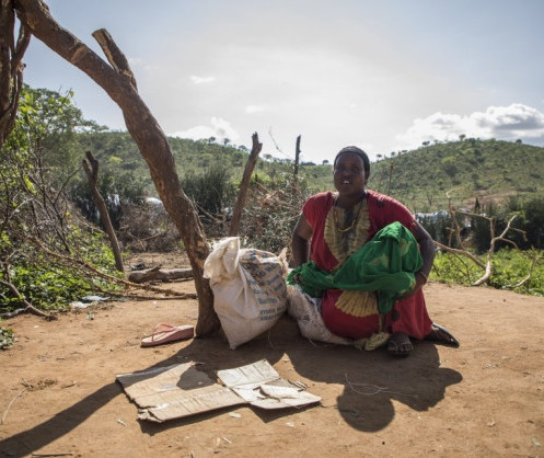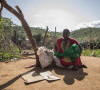• © UNHCR/Will Swanson | A refugee from Ethiopia sits next to a bag of rice donated by Kenyan officials at a camp in Moyale, Marsabit County, Kenya