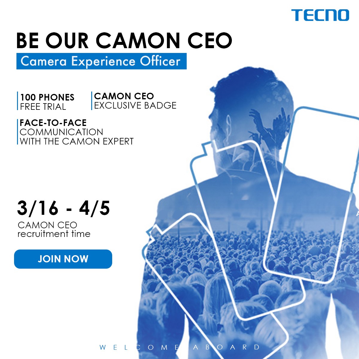 Avant de lancer sa toute nouvelle série de smartphones TECNO CAMON 15, TECNO Mobile (www.TECNOMobile.com) recrute 100 TAP (Testeurs d’Appareils Photos) CAMON au Nigeria et 25 au Ghana pour découvrir la nouvelle série de téléphones portables CAMON 15 et expérimenter la caractéristique qui rend ces appareils réellement exceptionnels : son appareil photo ultra-haute résolution.