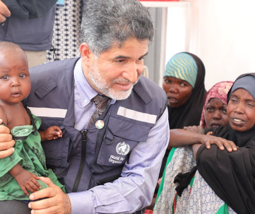 During his 3-day visit to Somalia, the World Health Organization (WHO) Regional Director for the Eastern Mediterranean Dr Ahmed Al-Mandhari visited North Galkacyo in Puntland state of Somalia to oversee WHO’s ongoing drought response activities, see the work of community health workers in delivering integrated health and nutrition services to the people displaced by the recent drought in Somalia and also visit one of the internally displaced population’s camps to see the challenges faced by the communities in meeting their health, nutrition, food and water and sanitation needs.