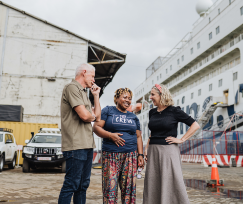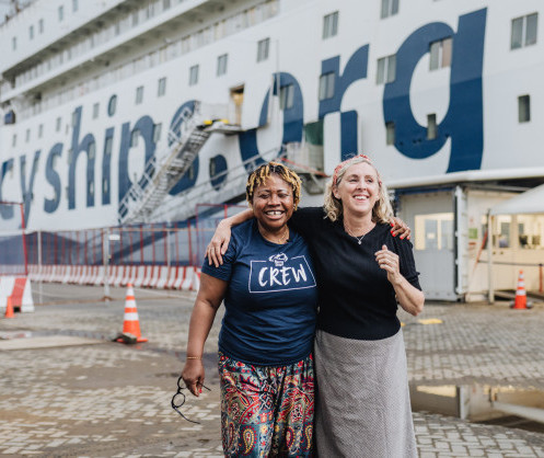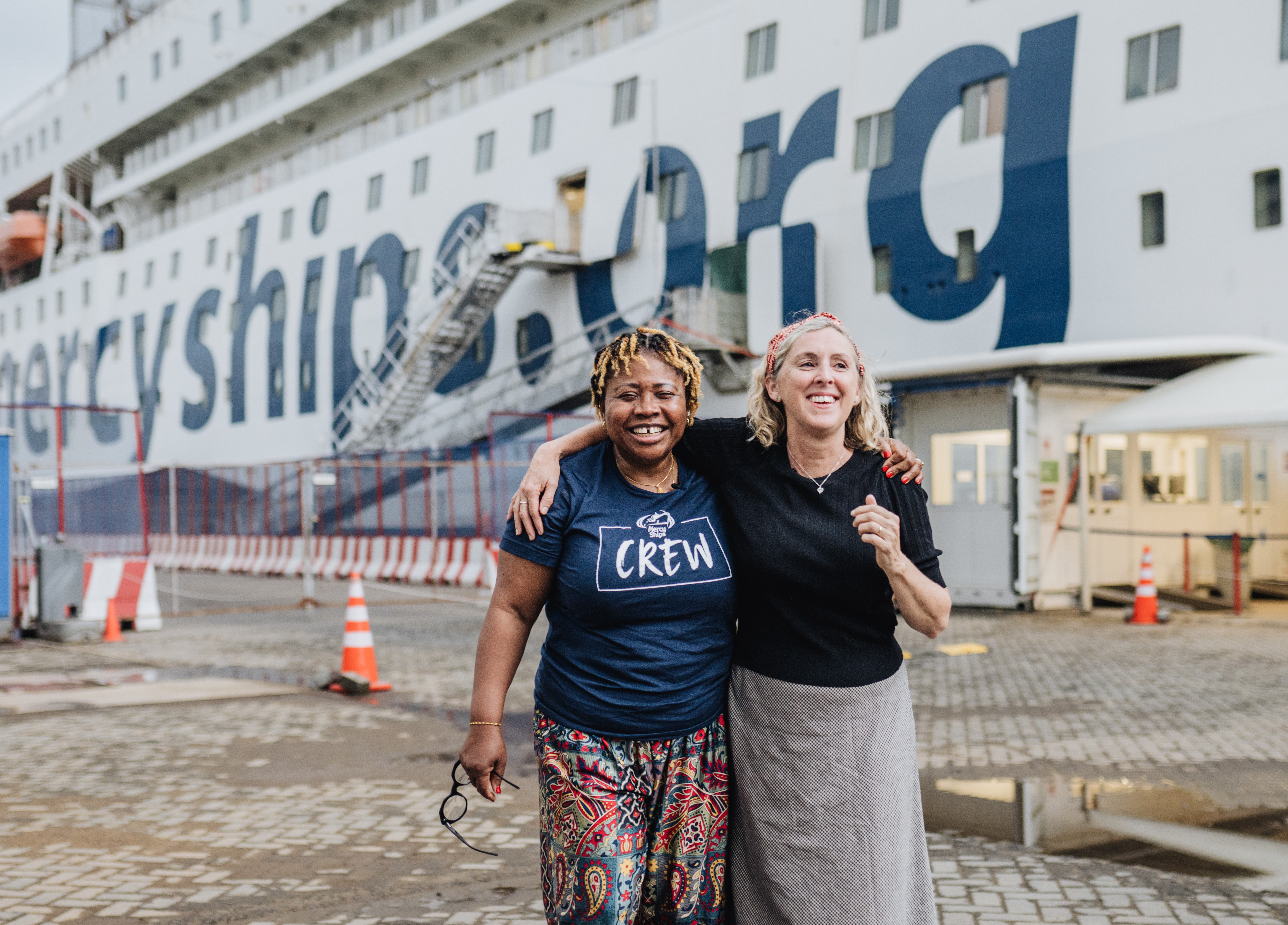 Aly est bénévole à bord du Global Mercy avec son mari pour trois mois pendant sa mission en Sierra Leone. Pour Catherine, qui venait à bord du navire-hôpital faire du bénévolat dans la salle à manger, ce moment avait une signification encore plus profonde.