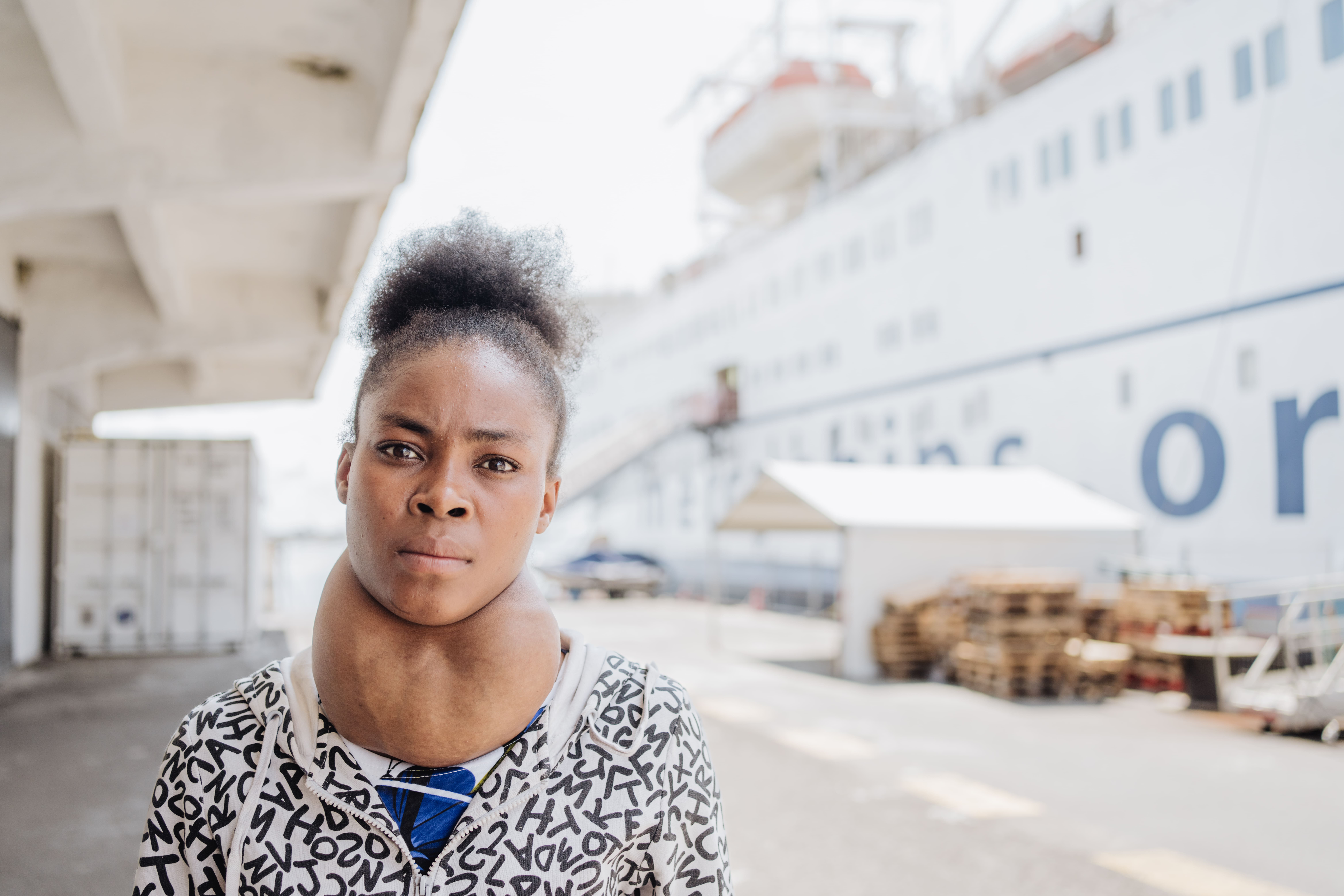 A young woman whose sore throat became a life-threatening growth in her neck, leaving her struggling to breathe, has had it removed for free by surgeon volunteers from international charity Mercy Ships (www.MercyShips.org).